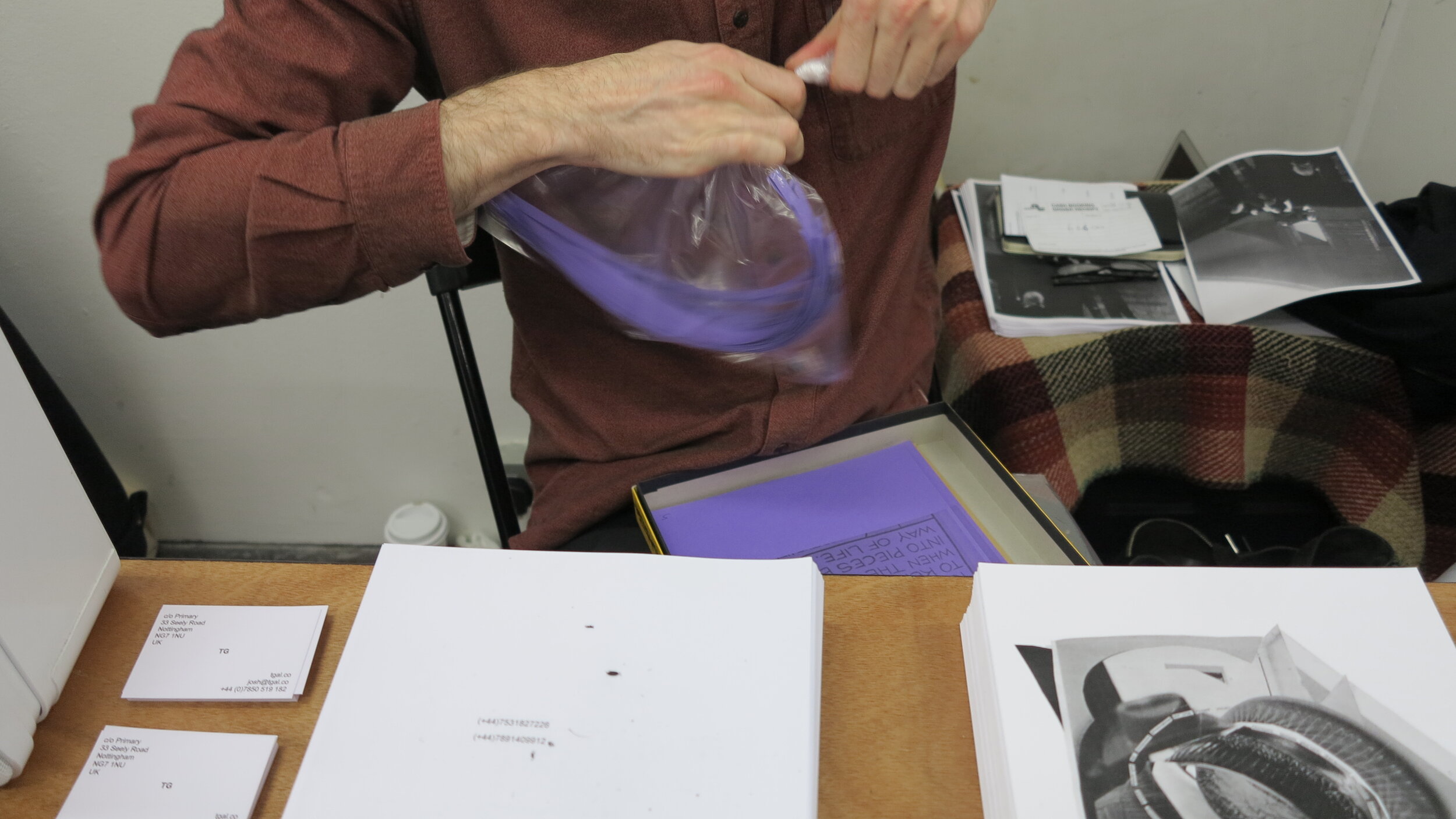Artists were all invited to produce an A4 work on paper that was reproduced to the value of 500 to create a ream of paper. The ream was then marbled along one edge, offering a shared origin for all 500 sheets that were then individually sold.